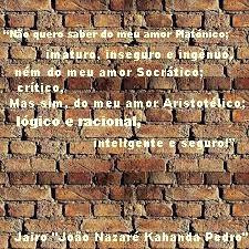 "Não quero saber do meu amor Platónico; imaturo, inseguro e ingénuo, ném do meu amor Socrático; crítico. Mas sim, do meu amor Aristotélico; lógico e racional, inteligente e seguro"